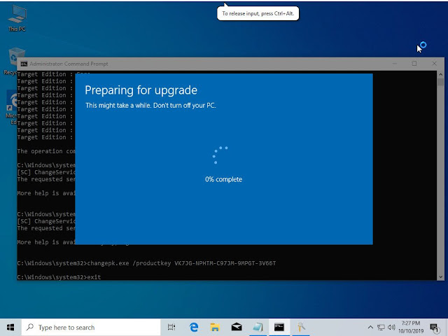 sc config LicenseManager start= auto & net start LicenseManager sc config wuauserv start= auto & net start wuauserv changepk.exe /productkey VK7JG-NPHTM-C97JM-9MPGT-3V66T exit