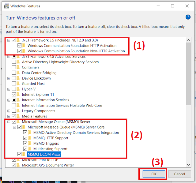 – Bước 2: Bật .Net framework 3.5 và MSMQ