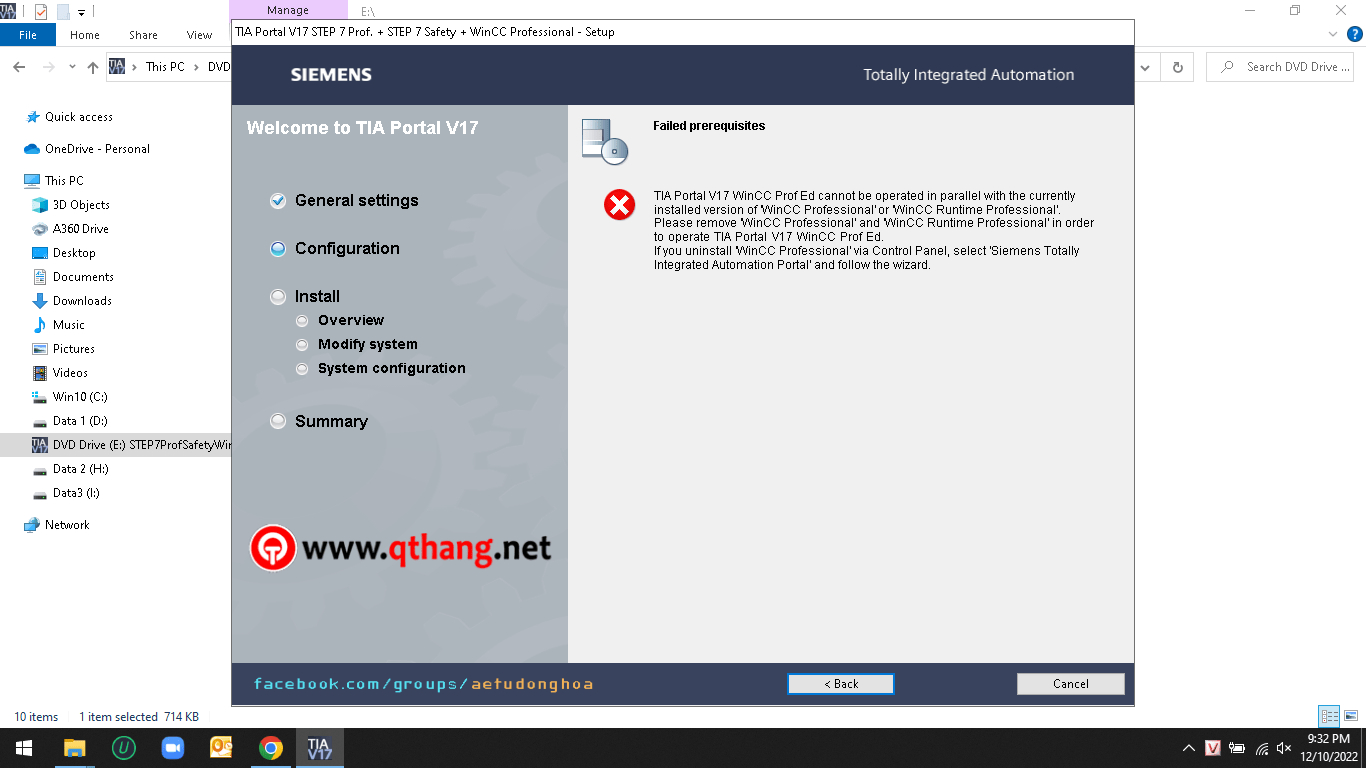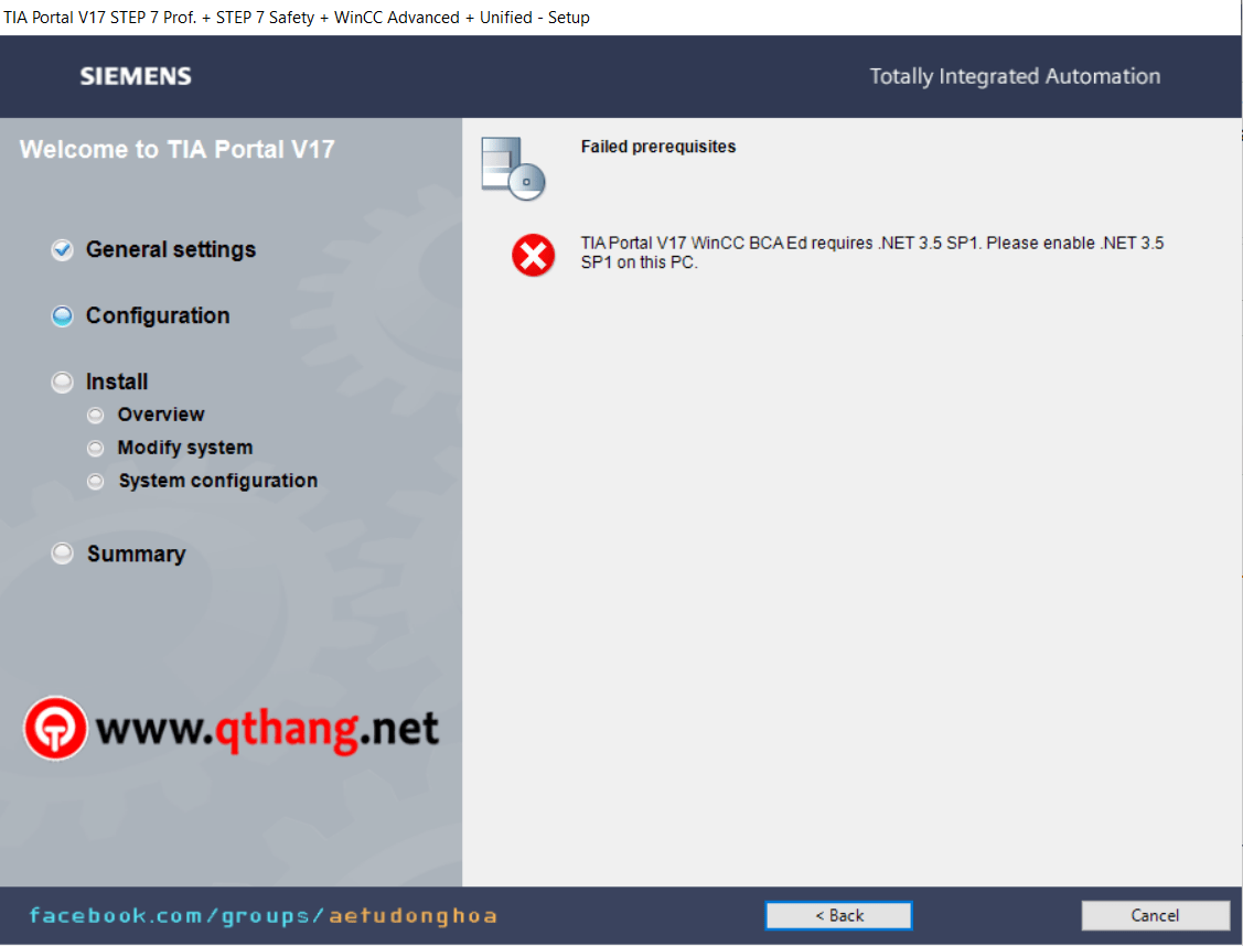 Cài WinCC Unified bị lỗi ko chi tích vào , cái này fix sao anh Thắng, thank