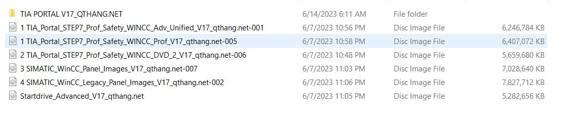 Link download TIA V17 (khuyên dùng) bao gồm: 1 TIA_Portal_STEP7_Prof_Safety_WINCC_Adv_Unified_V17_qthang.net.iso 1 TIA_Portal_STEP7_Prof_Safety_WINCC_Prof_V17_qthang.net.iso 2 TIA_Portal_STEP7_Prof_Safety_WINCC_DVD_2_V17_qthang.net.iso 3 SIMATIC_WinCC_Panel_Images_V17_qthang.net.iso 4 SIMATIC_WinCC_Legacy_Panel_Images_V17_qthang.net.iso 5 SIMATIC_S7-PLCSIM_V17_qthang.net.iso SIMATIC_PLCSIM_Advanced_V4_qthang.net.iso SIMATIC_WinCC_Runtime_Advanced_V17_qthang.net.iso SIMATIC_WinCC_Unified_PC_V17_qthang.net.iso SIMATICSCADA_Export_V17_qthang.net.iso SiVArc_V17_qthang.net.iso Startdrive_Advanced_V17_qthang.net.iso TIA_Portal_TestSuiteAdvanced_V17_qthang.net.iso