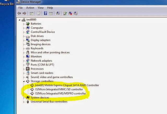 Tắt/ Disabling driver O2Micro Integrated MS/MSPRO Controller